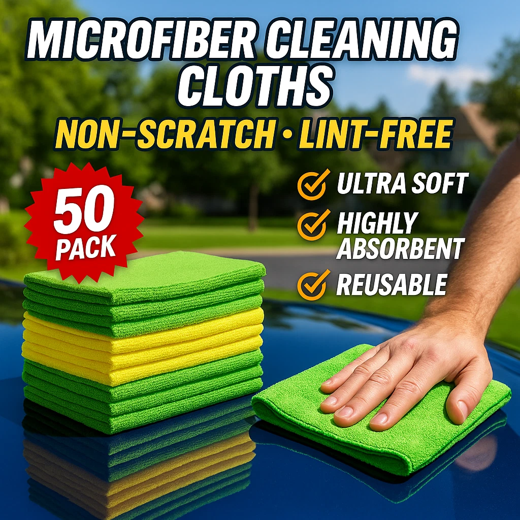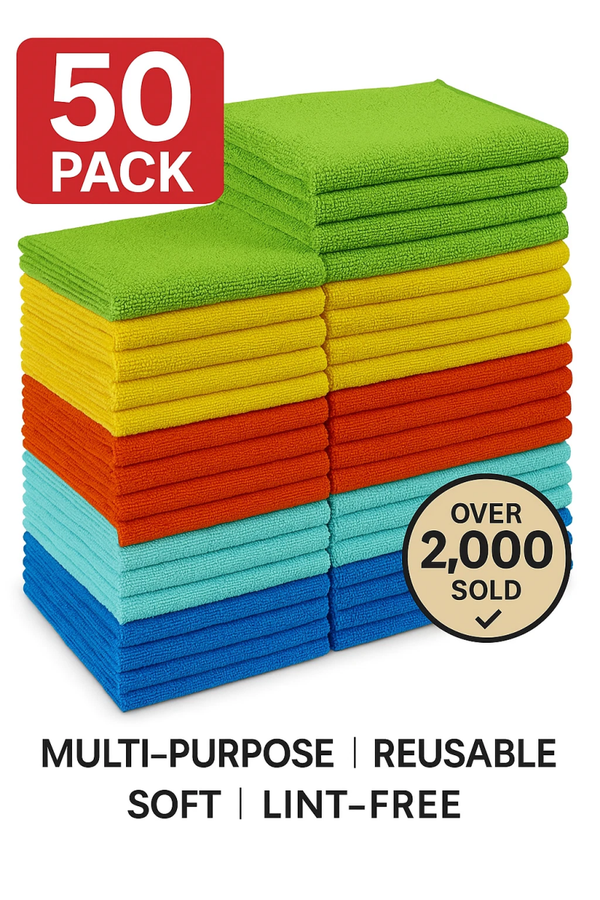 Microfiber Cleaning Cloth Set (50-Pack) – Ultra-Soft, Lint-Free Towels for Car Detailing & Scratch