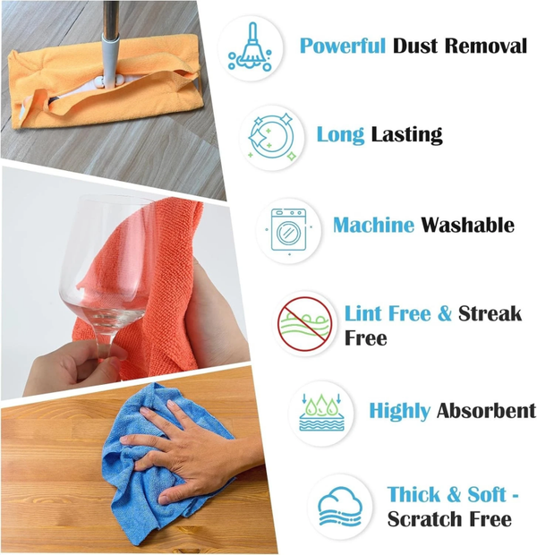 Crafted with over 300,000 fibers per square inch, these microfiber cloths quickly soak up water, spills, and grime, making cleaning faster and more efficient.